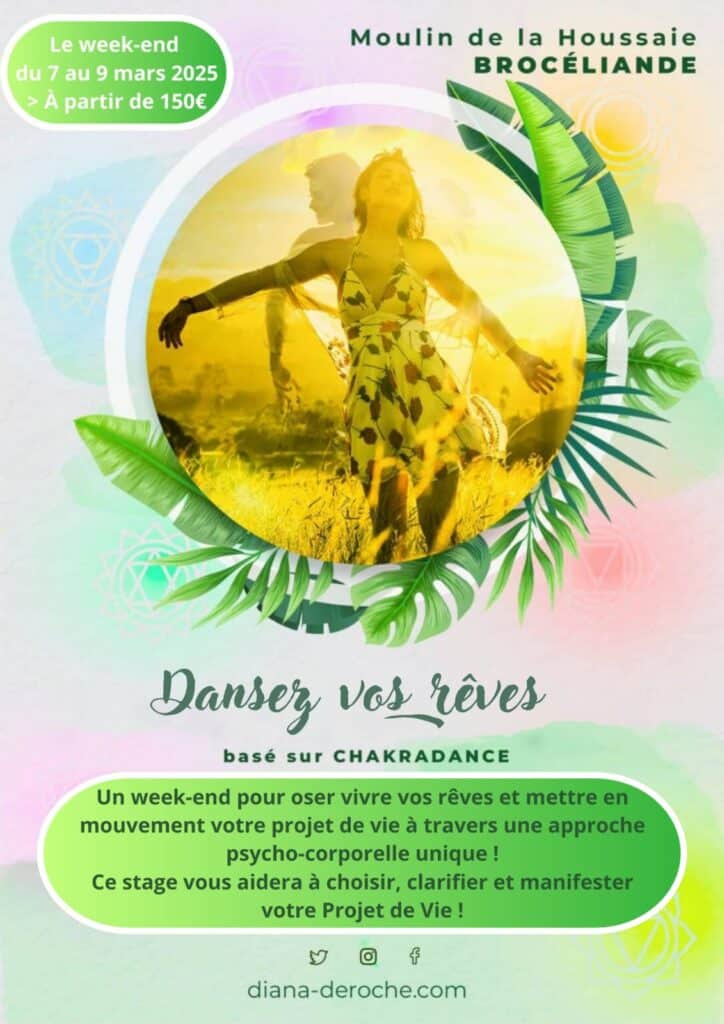 Cela me tient à cœur et j’aime vous donner rendez-vous afin d’explorer ensemble le voyage au pays de la danse intuitive des chakras.